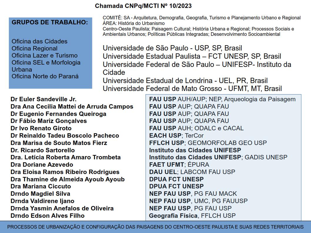 A pesquisa busca a compreensão do processo de configuração territorial das escalas regionais a oeste no Estado de São Paulo, com foco em seu desenvolvimento no Planalto Ocidental a partir do final da Segunda Guerra. Para isso, investiga múltiplas interações escalares e temporalidades recentes na configuração desses territórios e as tensões entre sociedade e cultura e das práticas nas paisagens, com atenção à persistência ressignificada de outros tempos e temporalidades na tessitura das redes e lugares e seu processo de reconfiguração de paisagens e das vivências e valores, procurando identificar tipologias urbanas e regionais no processo de construção dessas paisagens. Serão consideradas três questões específicas: (1) as redes de cidades organizadas em regiões com sua distribuição desigual regional e intraurbana de riquezas e fluxos, (2) os processos territoriais e de urbanização, grandes projetos públicos e privados de infraestrutura e urbanização configurando paisagens regionais e tipologias urbanas e (3) sua integridade social e desigualdades e práticas no reconhecimento institucional de seu patrimônio natural e cultural e na qualidade de sua estrutura urbana e potencialidades paisagísticas, inclusive ambientais e turísticas. Do ponto de vista metodológico, será feito um levantamento dos grandes projetos regionais e de urbanização, da cartografia histórica e dados censitários e da configuração da ocupação da terra e das tipologias urbanísticas no período definido na pesquisa, com o objetivo de elaborar uma cartografia analítica de seu desenvolvimento e contribuir para uma discussão de períodos possíveis para o seu entendimento. Serão considerados aspectos do ambiente natural transformado, das redes e estruturas urbanas em sua tipologia e identificados elementos e processos de configuração dessas paisagens culturais no interior do Estado de São Paulo e suas relações com os processos do norte do Paraná e Mato Grosso.