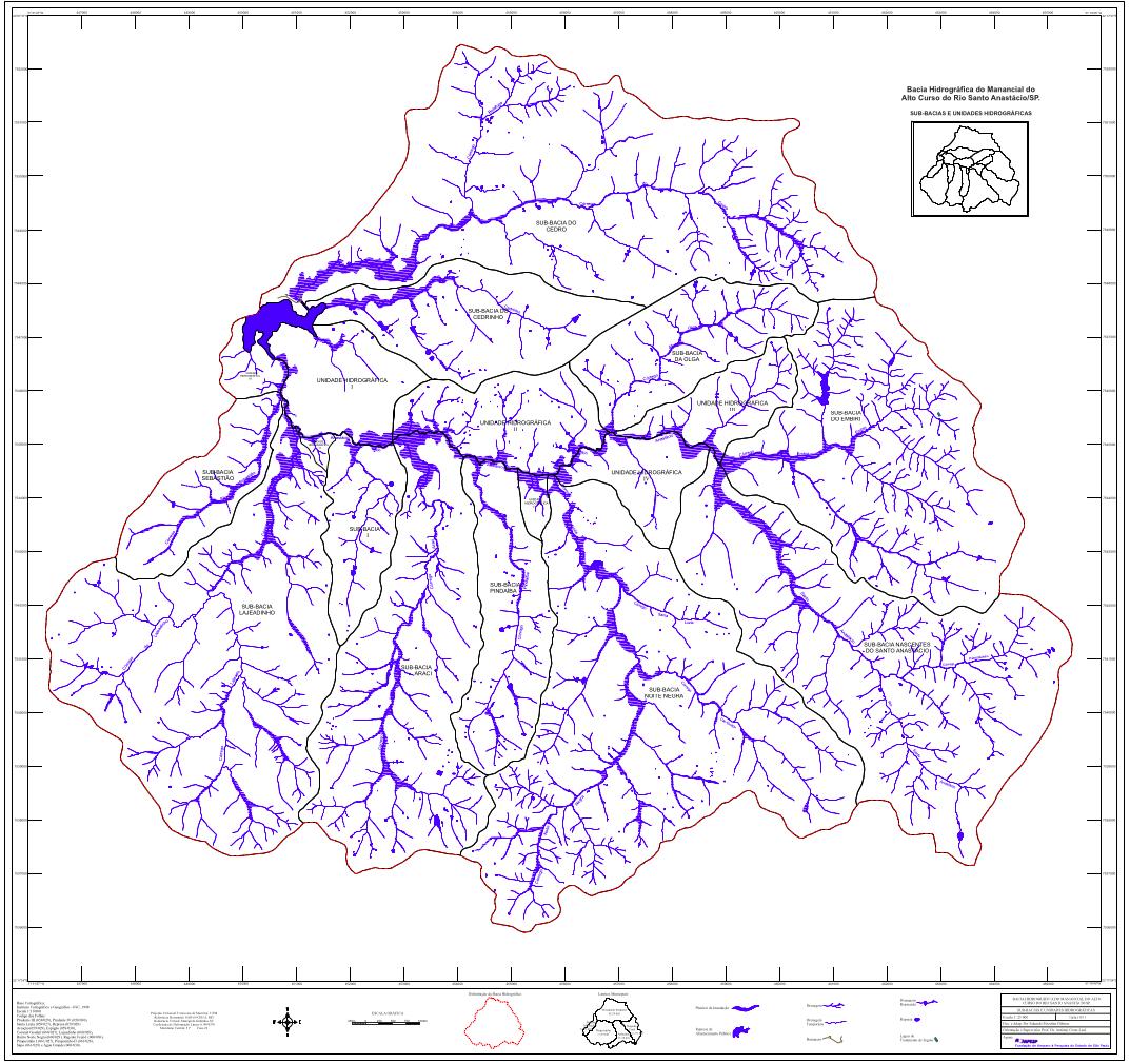 Bacia do Alto Santo Anaastácio: municípios e subbacias. Fonte: Dibieso 2013