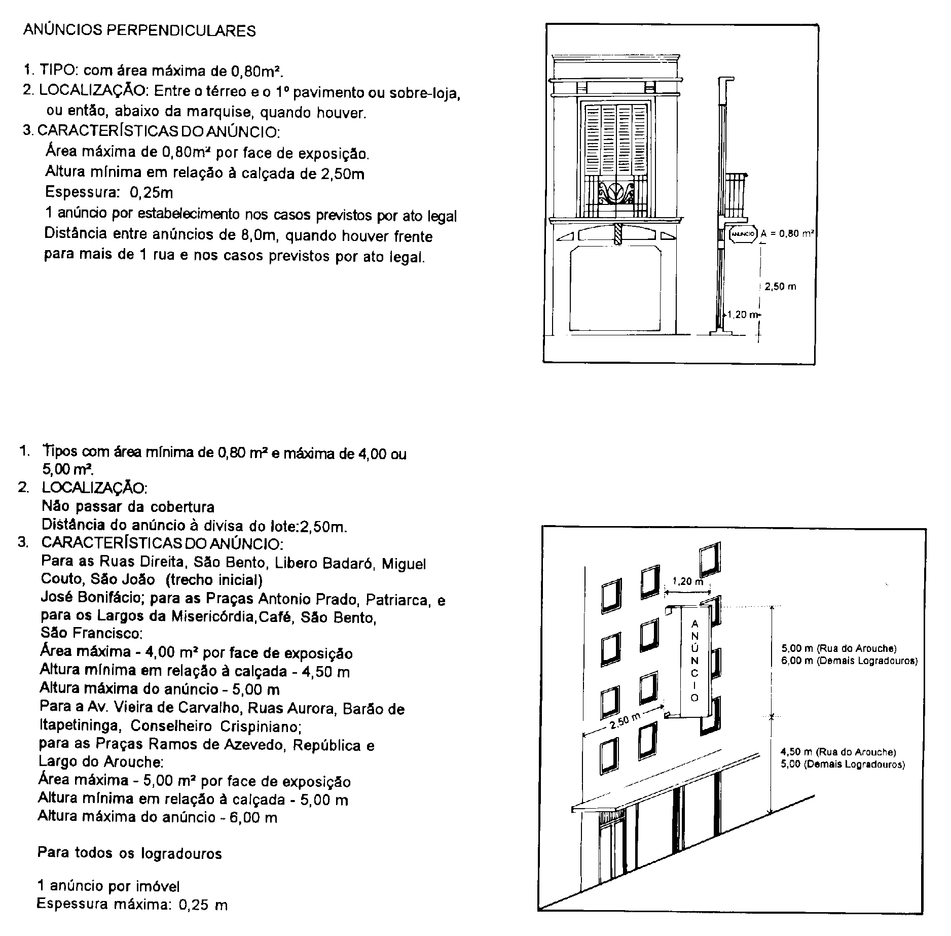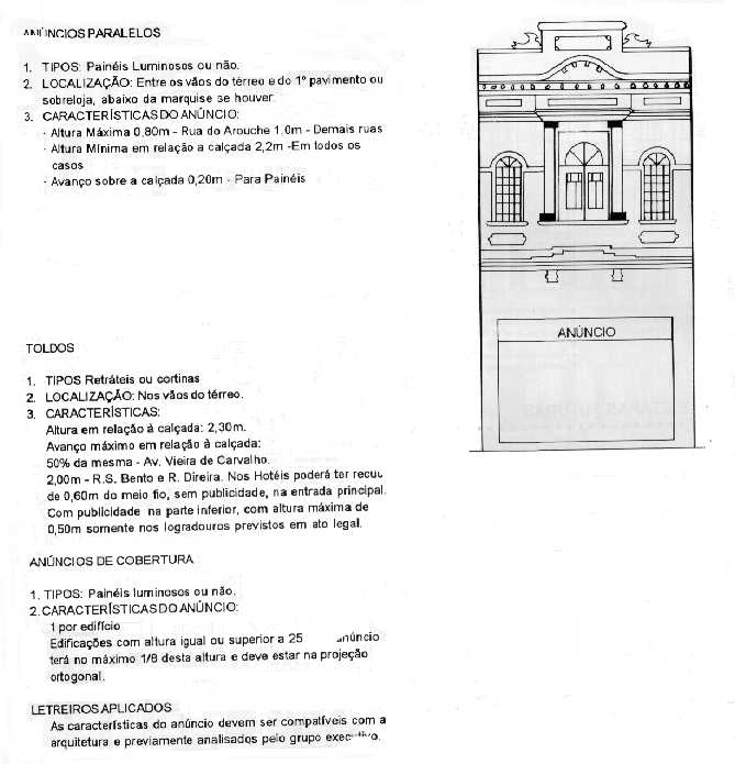 b. racionalizar e disciplinar os elementos publicitários que se acumulavam sobre as fachadas e espaços públicos, muitos apresentando problemas graves de segurança, levando em conta a identidade de cada logradouro e imóveis de interesse arquitetônico, o que nos conduziu à elaboração de legislação específica para cada trecho do Eixo, porém referenciadas em uma diretriz geral.