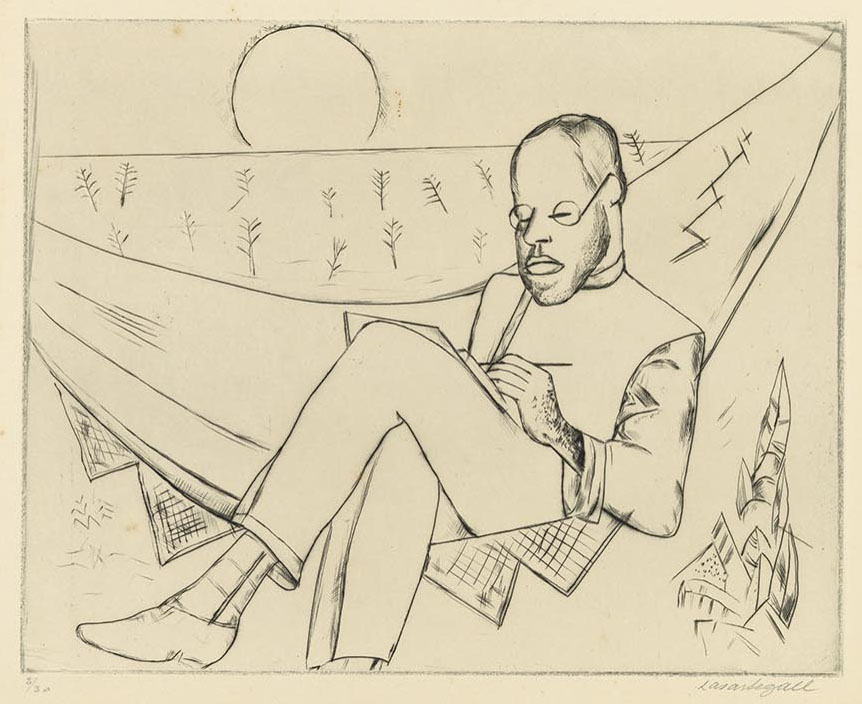 Mário na rede (Lasar Segall, 1929. Ponta-seca sobre papel, 32 x 25,5 cm. Acervo Museu Lasar Segall
