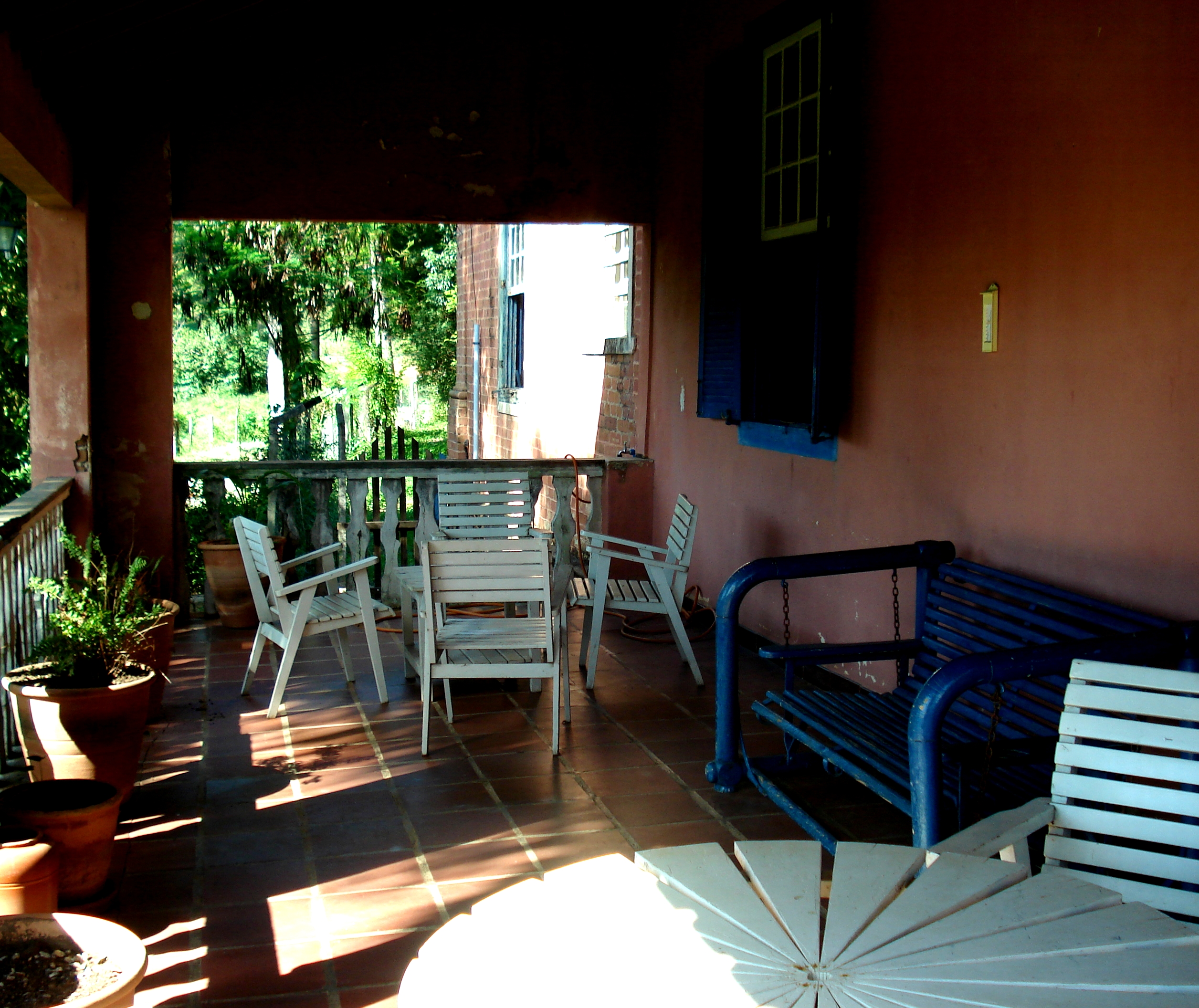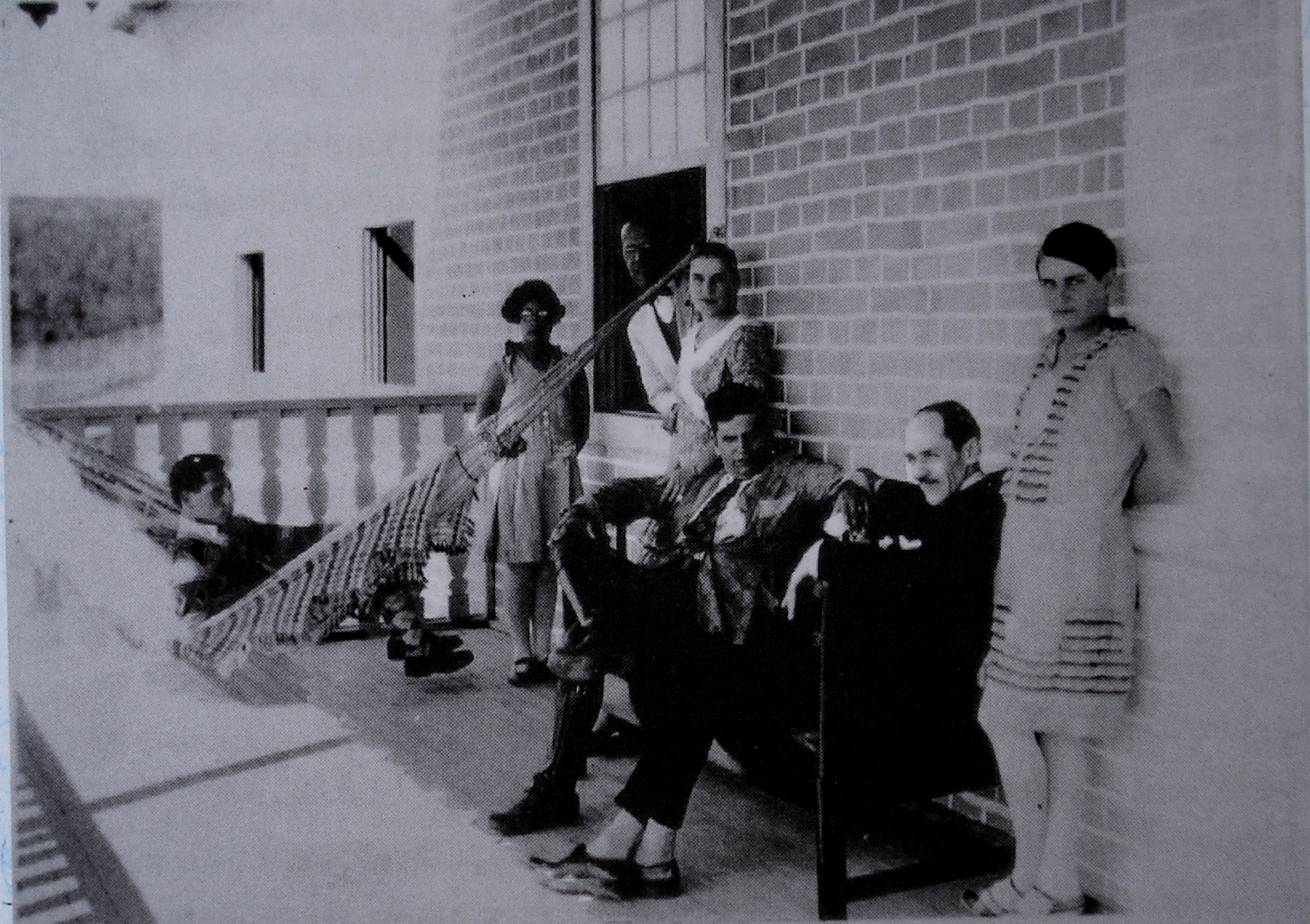 Da direita para a esquerda: Dulce (a primeira), Oswald (o terceiro), Tarsila (a quarta), Mario (o quinto, na janela) na Fazenda Santa Teresa do Alto, s/d