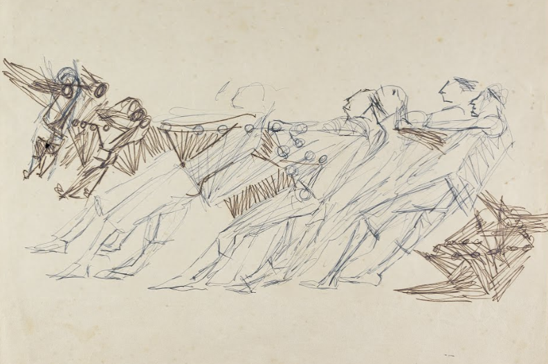 João Cândido Portinari, Puxada da Rede, caderno de esboço do artista com caneta-tinteiro-32x24cm, Rio de Janeiro, Sem assinatura e sem data 1959. Disponível em https://artsandculture.google.com/asset/pulling-in-the-net/hwGXzcf623Qarw?hl=pt-br