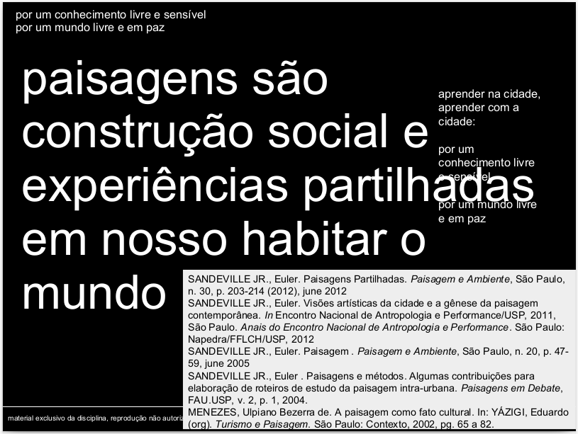 SANDEVILLE JUNIOR, Euler. Visões artísticas da cidade e a gênese da paisagem contemporânea ↑. Encontro Nacional de Antropologia e Performance/USP, 2011, São Paulo. Anais do Encontro Nacional de Antropologia e Performance. São Paulo: Napedra/FFLCH/USP, 2012.