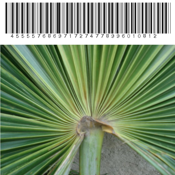 Figura 2: Logo do sítio Núcleo de estudos da Paisagem / A Natureza e o Tempo (o Mundo). Código de barras da cultura, criação Euler Sandeville, 2007. Folha de palmeira, det., foto de Euler Sandeville, 2010.